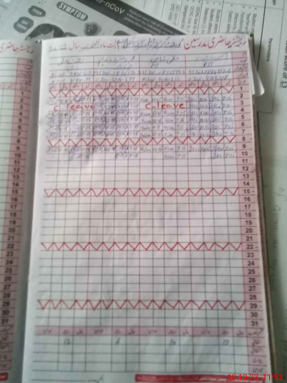 | CNIC | Full Name | Designation | R/C | Absence During Last Calender Month |