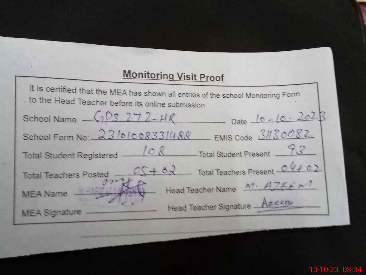 | EMIS Code: 31130082 | Name of School: GPS 272/HR | |||