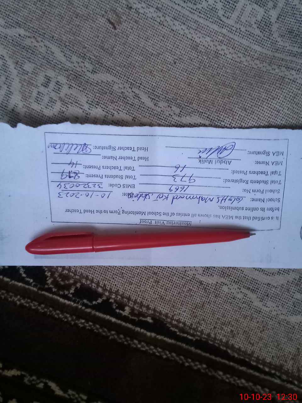 | Certified that this School was Inspected by the Undersigned MEA/DMO Today and the Information Stated Above is as Per Record. | |||||