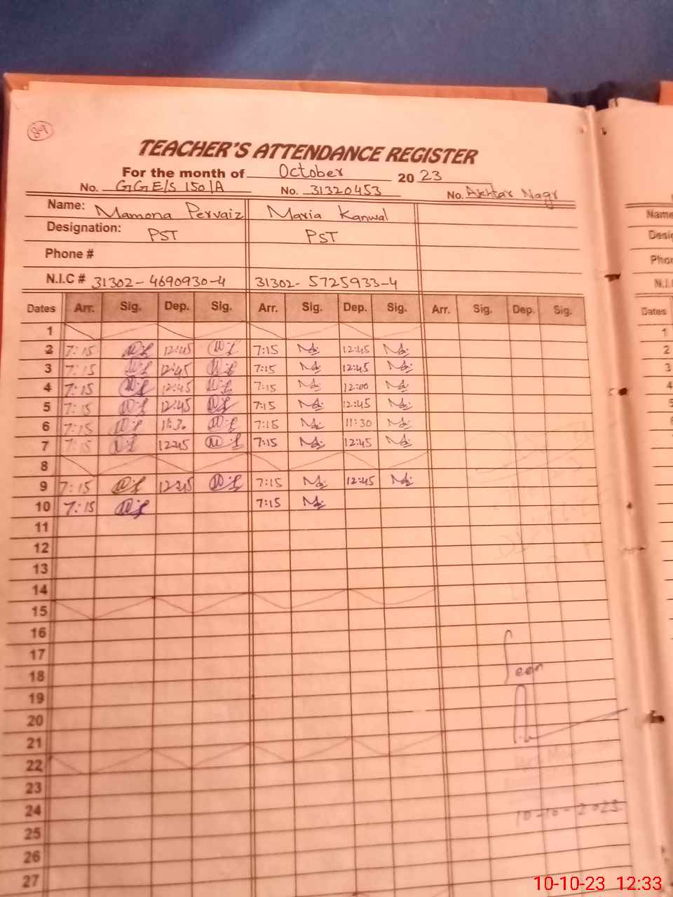 | CNIC | Full Name | Designation | R/C | Absence During Last Calender Month |