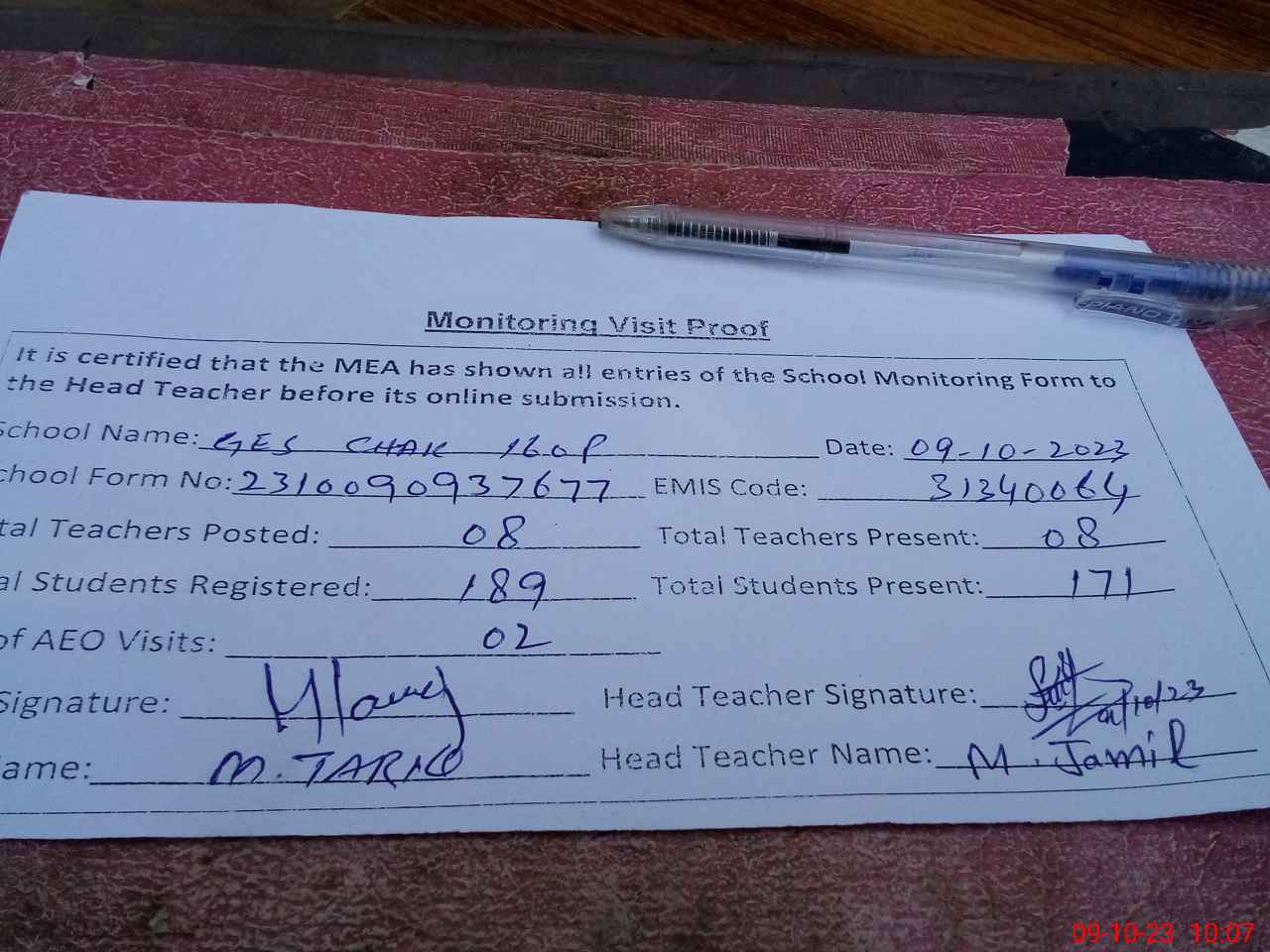 | EMIS Code: 31340064 | Name of School: GES CHAK 160/P | |||