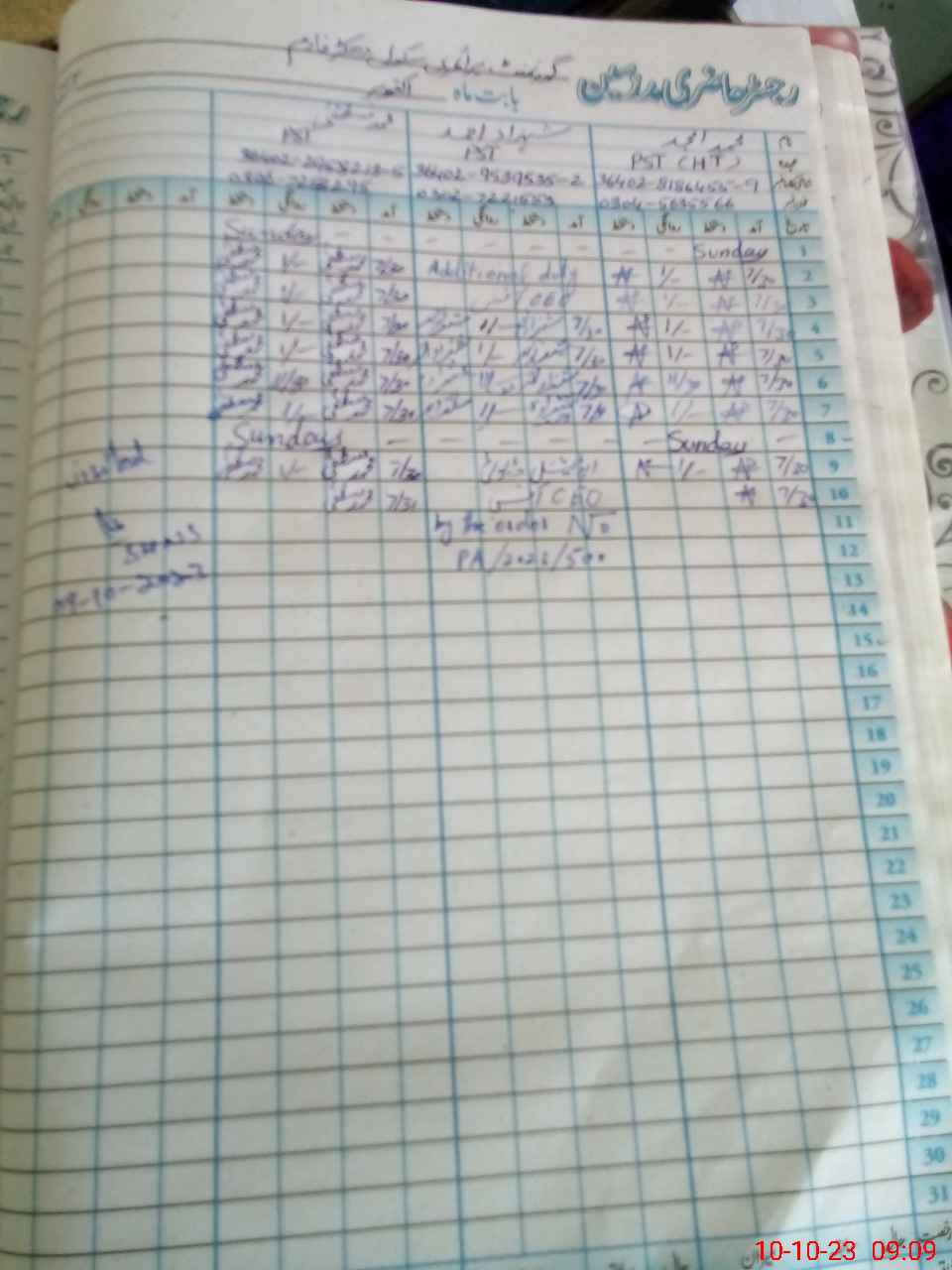 | Name: MU**** MU**** Designation: (School Headmaster's/Headmistress's) PST Phone/Cell Number: 03**** |