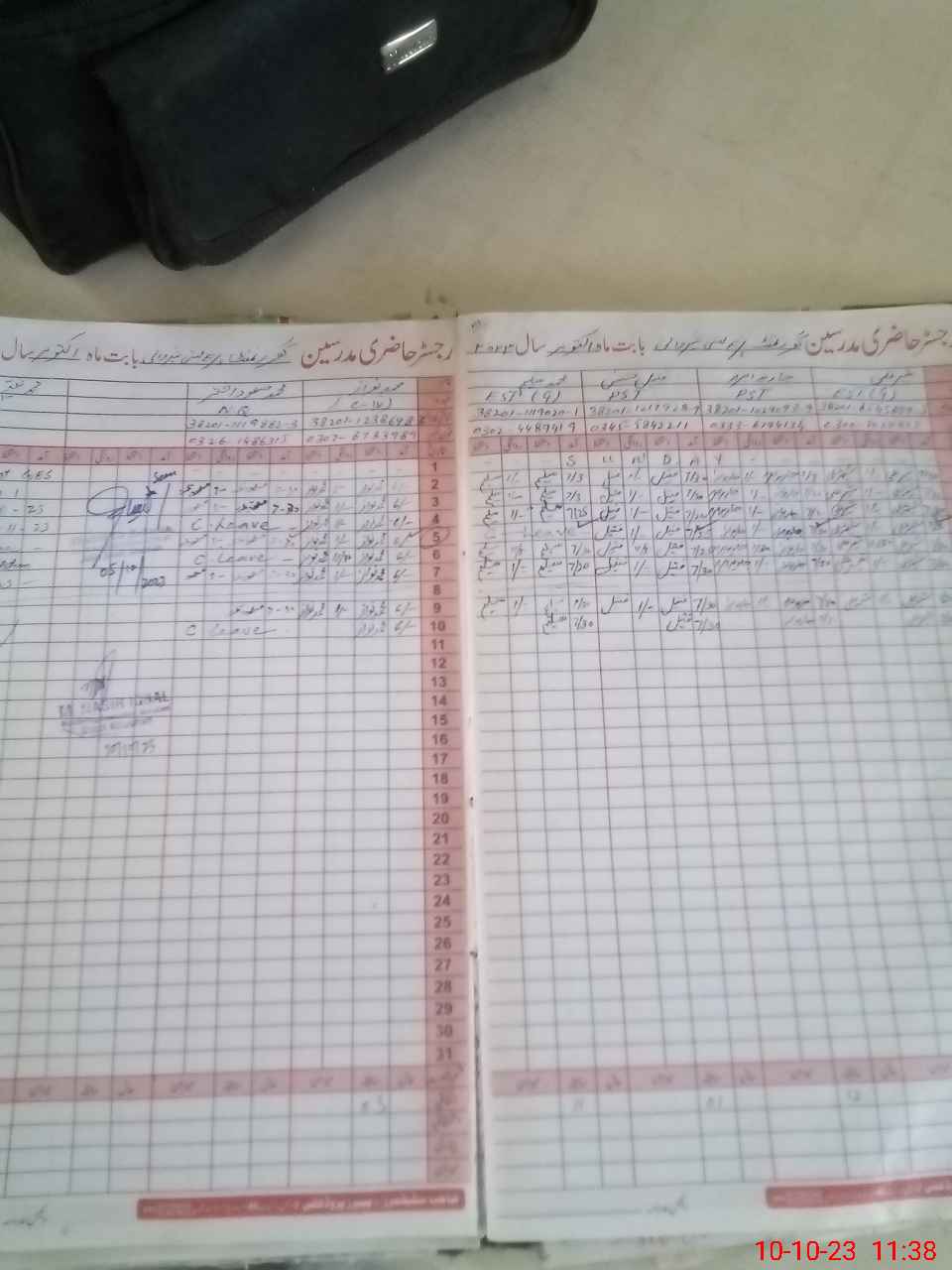 | CNIC | Full Name | Designation | R/C | Absence During Last Calender Month |