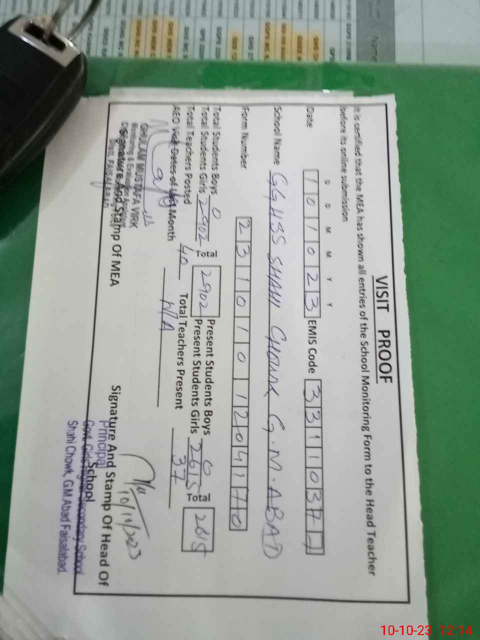 | EMIS Code: 33110377 | Name of School: GGHSS SHAHI CHOWK GHULAM MUHAMMAD ABAD FSD | |||