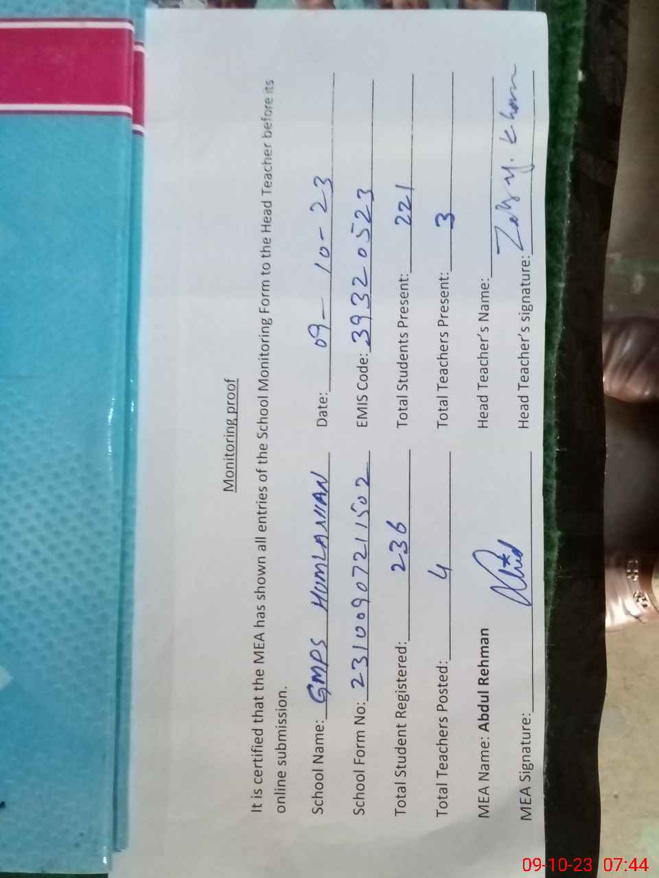 | EMIS Code: 39320523 | Name of School: GMPS HAMLANIA | |||