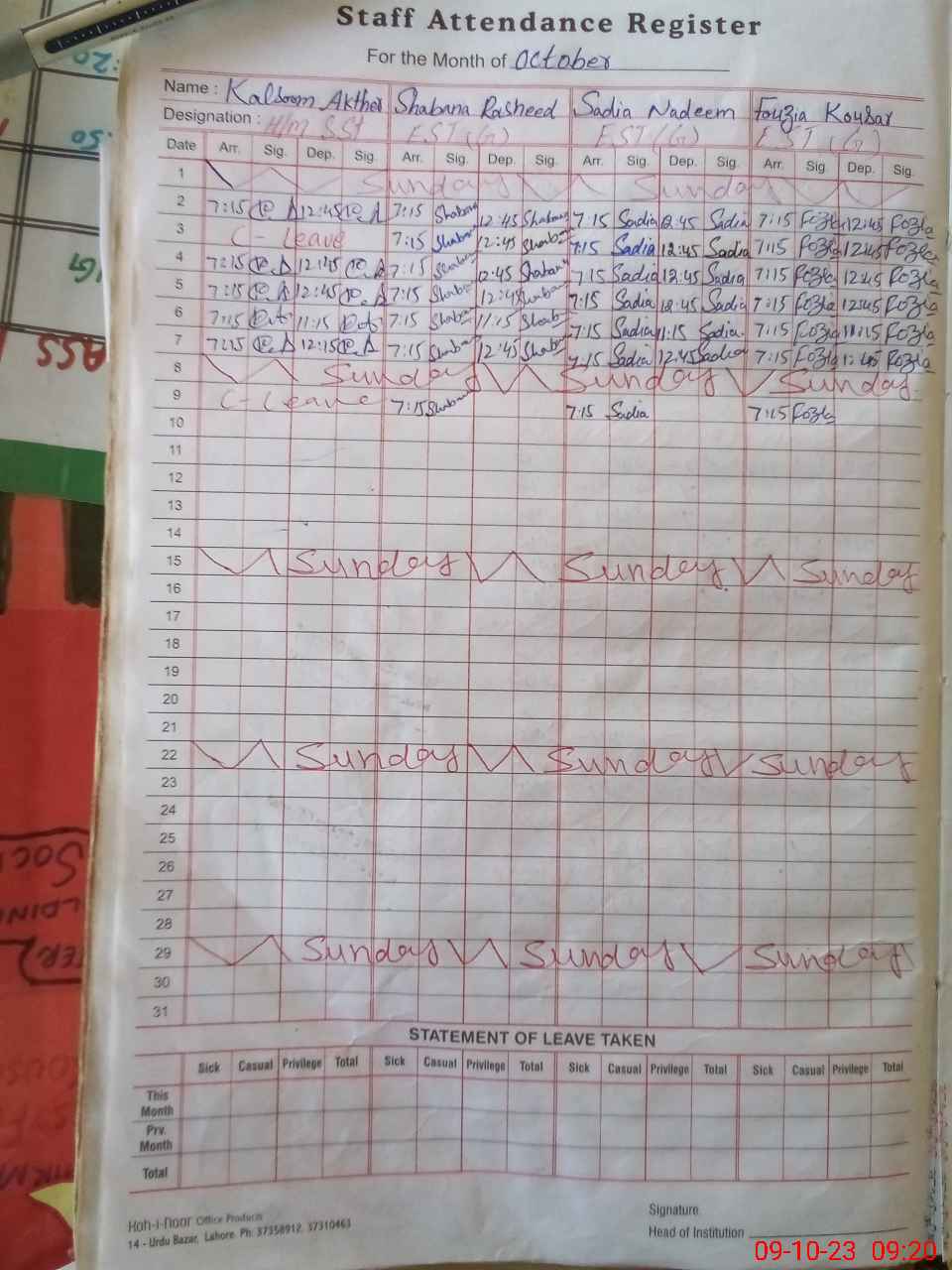 | Leave | Duty | Absent | Maternity | Medical | Ex- Pak |