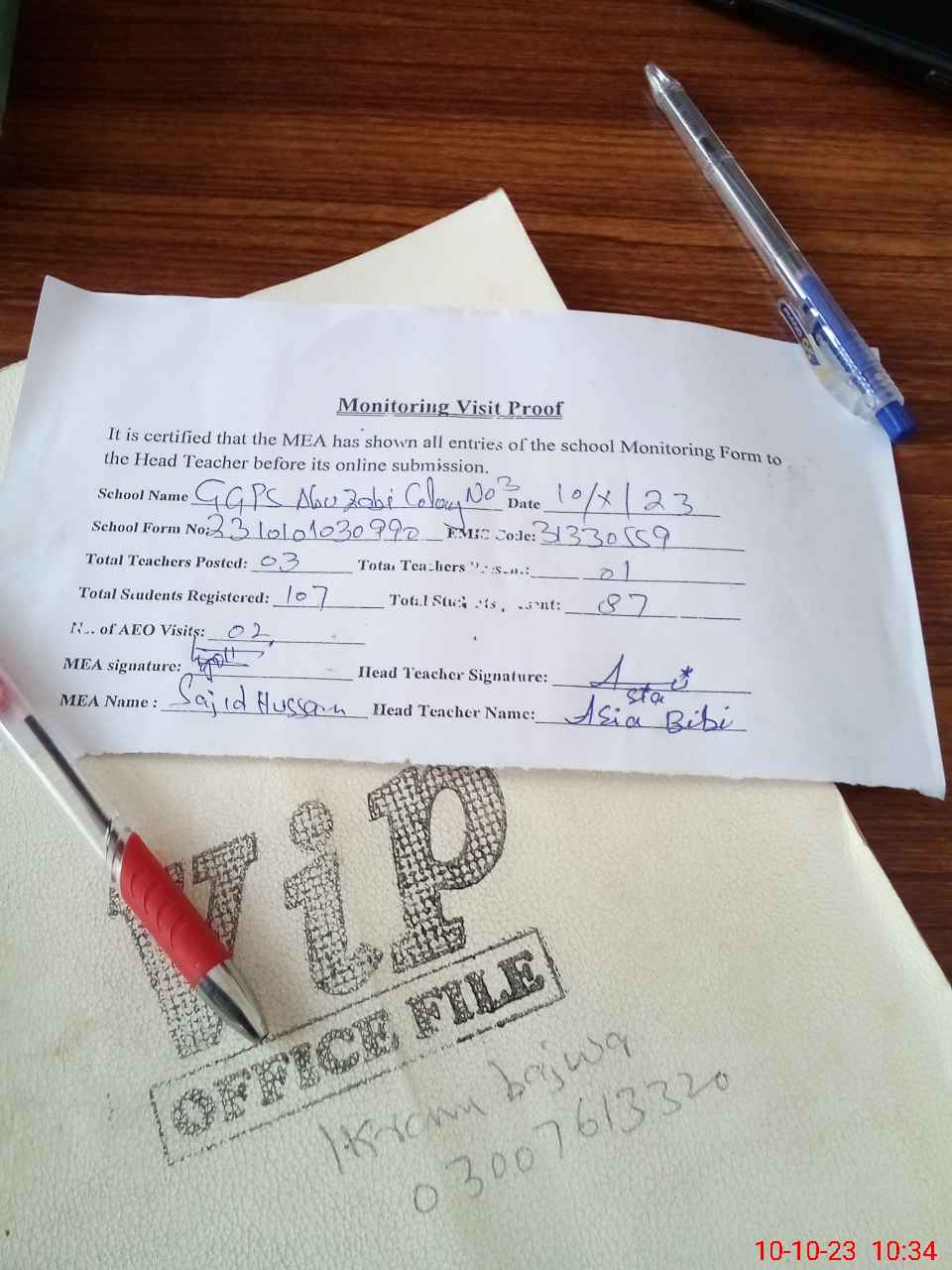 | EMIS Code: 31330559 | Name of School: GGPS NO.3 ABU ZAHBI COLONY NO 3 | |||