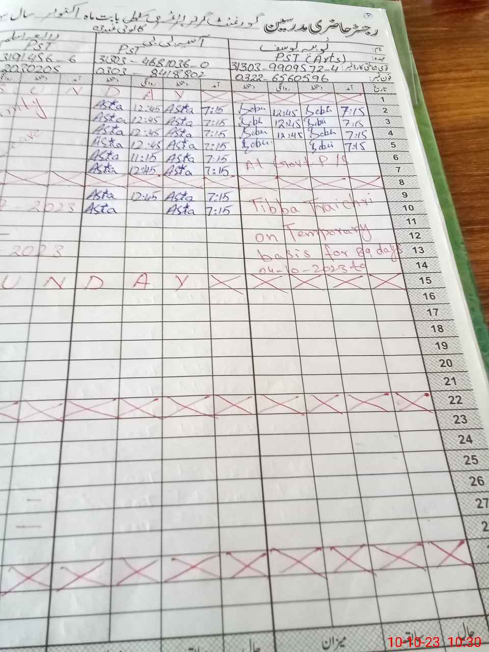 | Name: Ra**** As**** Designation: (School Headmaster's/Headmistress's) PST Phone/Cell Number: 03**** |