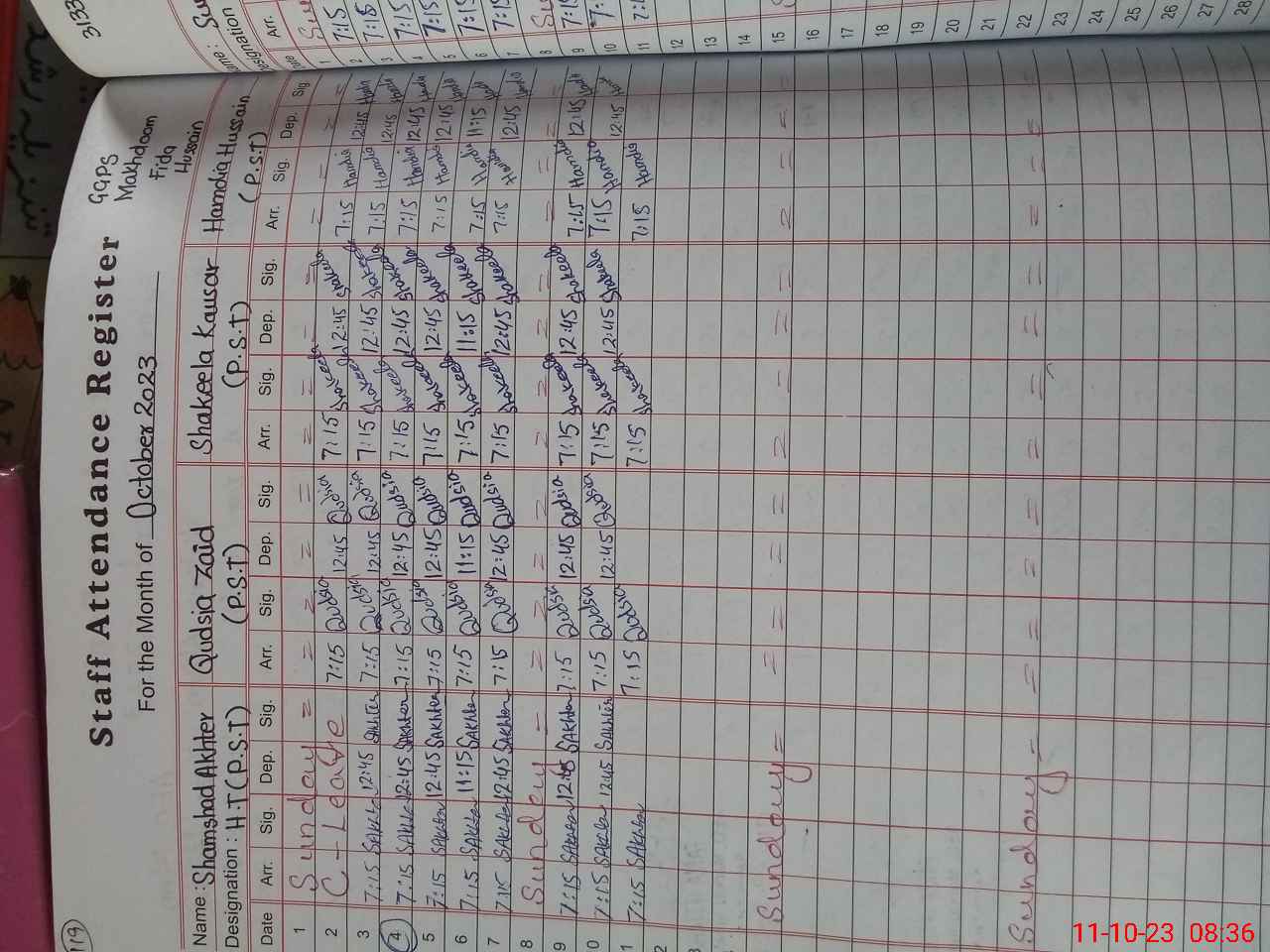 | Monitoring Date: 11-10-2023 | Start Time: 11-10-2023 08:21 AM | End Time: 11-10-2023 08:54 AM | Name of MEA: Sh**** Ah**** | |