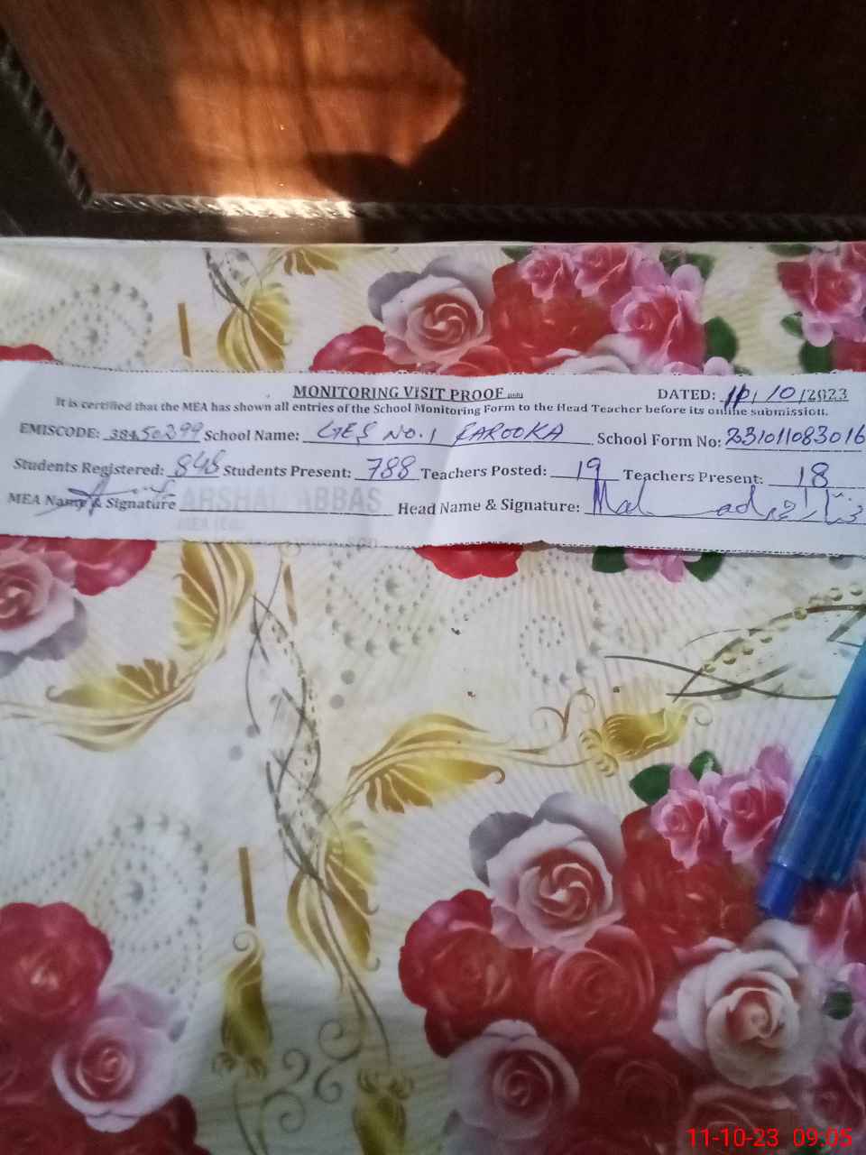 | District: SARGODHA | Tehsil: SAHIWAL | Markaz: FAROOQA - MALE | Level: Middle | |