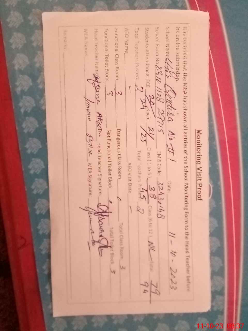 | EMIS Code: 32430148 | Name of School: GGPS QADRA NO. 1 | |||