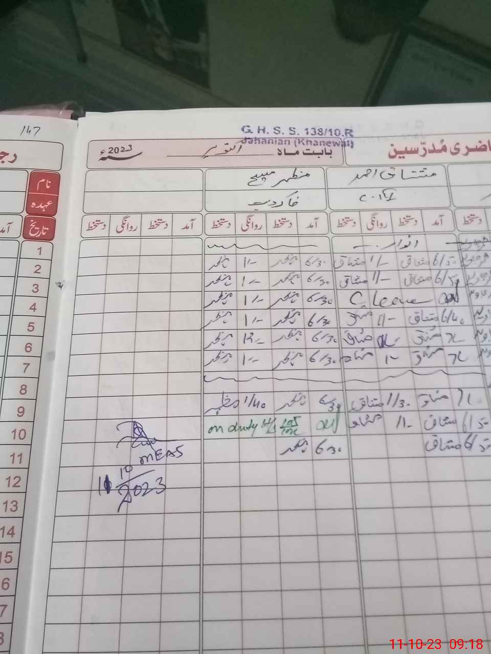 | Monitoring Date: 11-10-2023 | Start Time: 11-10-2023 08:37 AM | End Time: 11-10-2023 09:33 AM | Name of MEA: Ab**** Ja**** (S**** 20**** | |