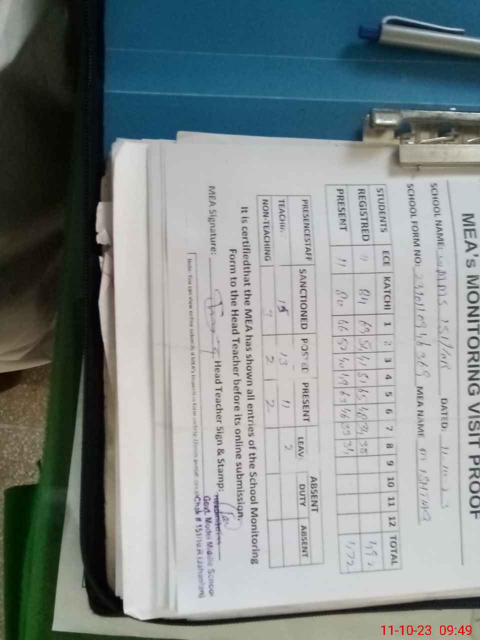 | Monitoring Date: 11-10-2023 | Start Time: 11-10-2023 08:34 AM | End Time: 11-10-2023 09:51 AM | Name of MEA: M.Is**** (S**** 03**** | |
