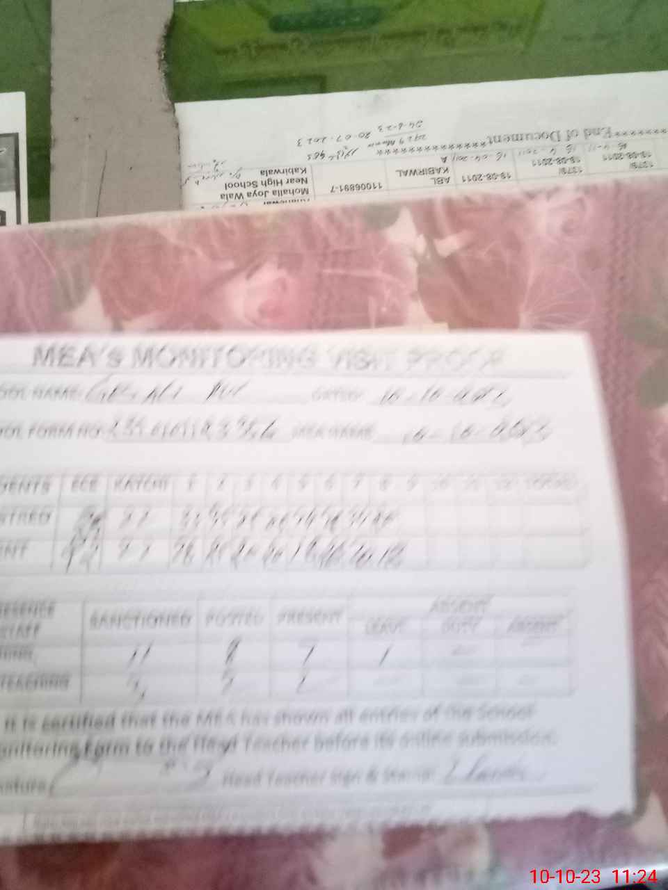 | Monitoring Date: 10-10-2023 | Start Time: 10-10-2023 10:53 AM | End Time: 10-10-2023 11:25 AM | Name of MEA: Ra**** Ha**** | |