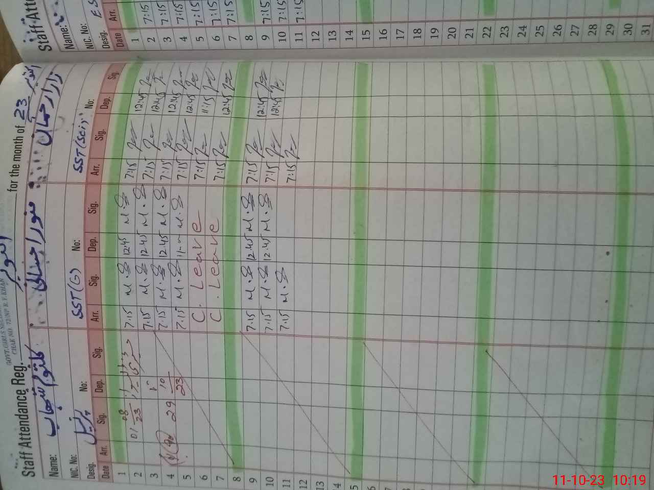 | 31**** | Gh**** Ya**** | JUNIOR CLERK | Regular | 1 | 22 | 0 | 0 | 0 | 0 | 0 | 0 | 1 | Casual |