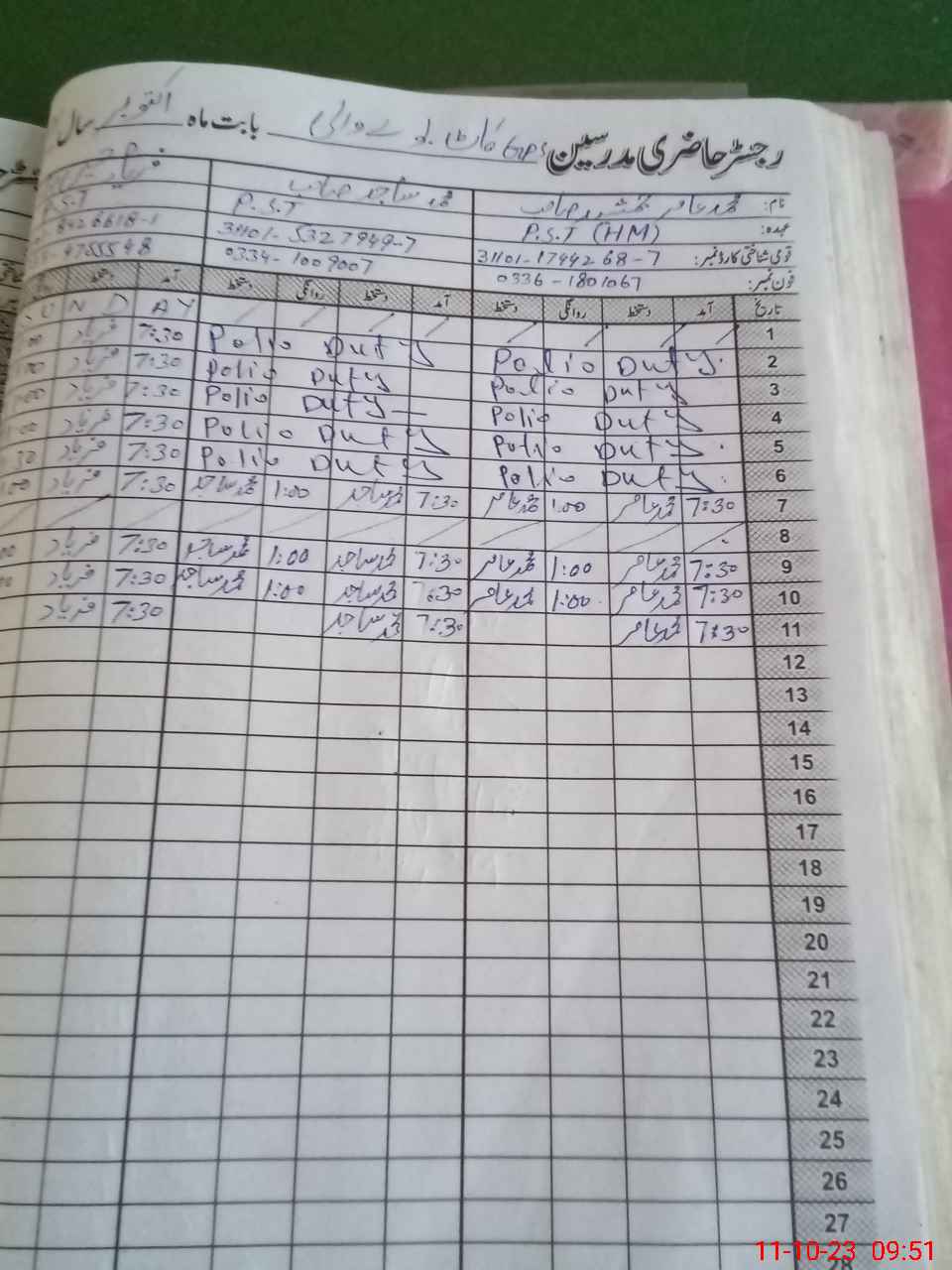 | Name: MSa**** Ra**** Designation: (School Headmaster's/Headmistress's) PST Phone/Cell Number: 03**** |