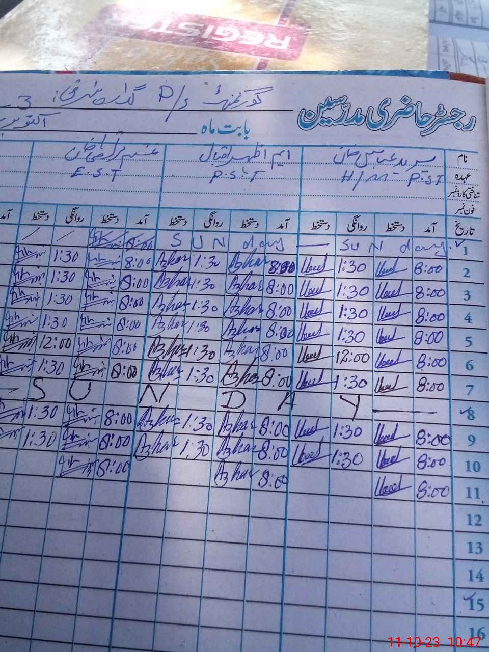 | Name: Ur**** Ab**** Designation: (School Headmaster's/Headmistress's) PST Phone/Cell Number: 03**** |