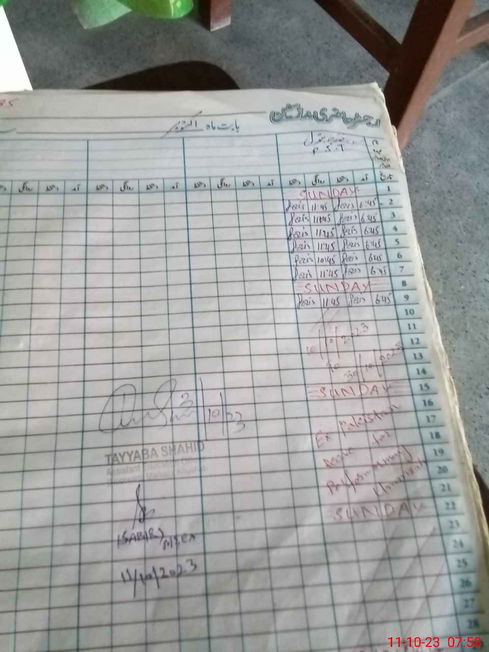 | CNIC | Full Name | Designation | R/C | Absence During Last Calender Month |
