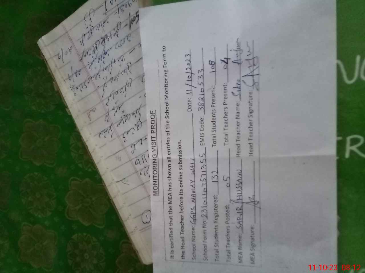 | Attendance Register | Head Teacher | MEA with School | Visit Proof |