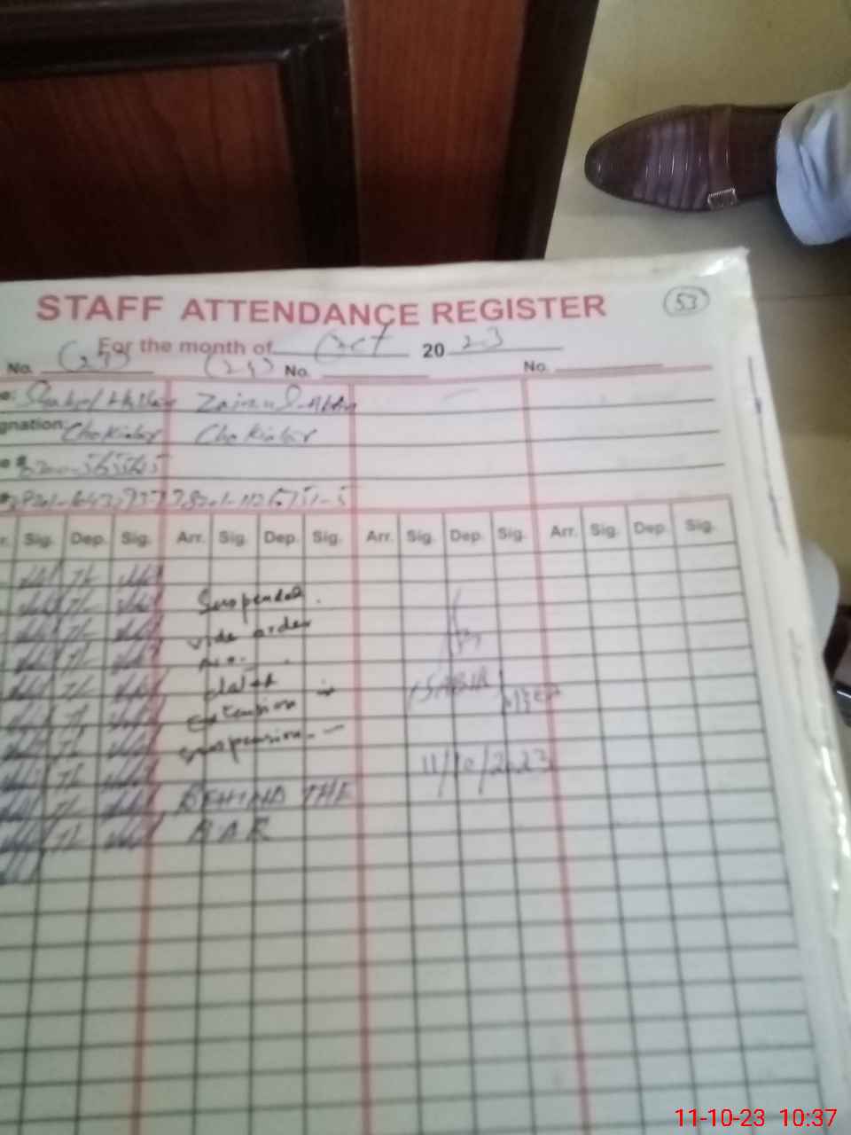 | 38**** | Za**** UlAb**** | CHAWKIDAR | Regular | 0 | 0 | 30 | 0 | 0 | 0 | 0 | 0 | 0 | Absent (Un-Authorized) |