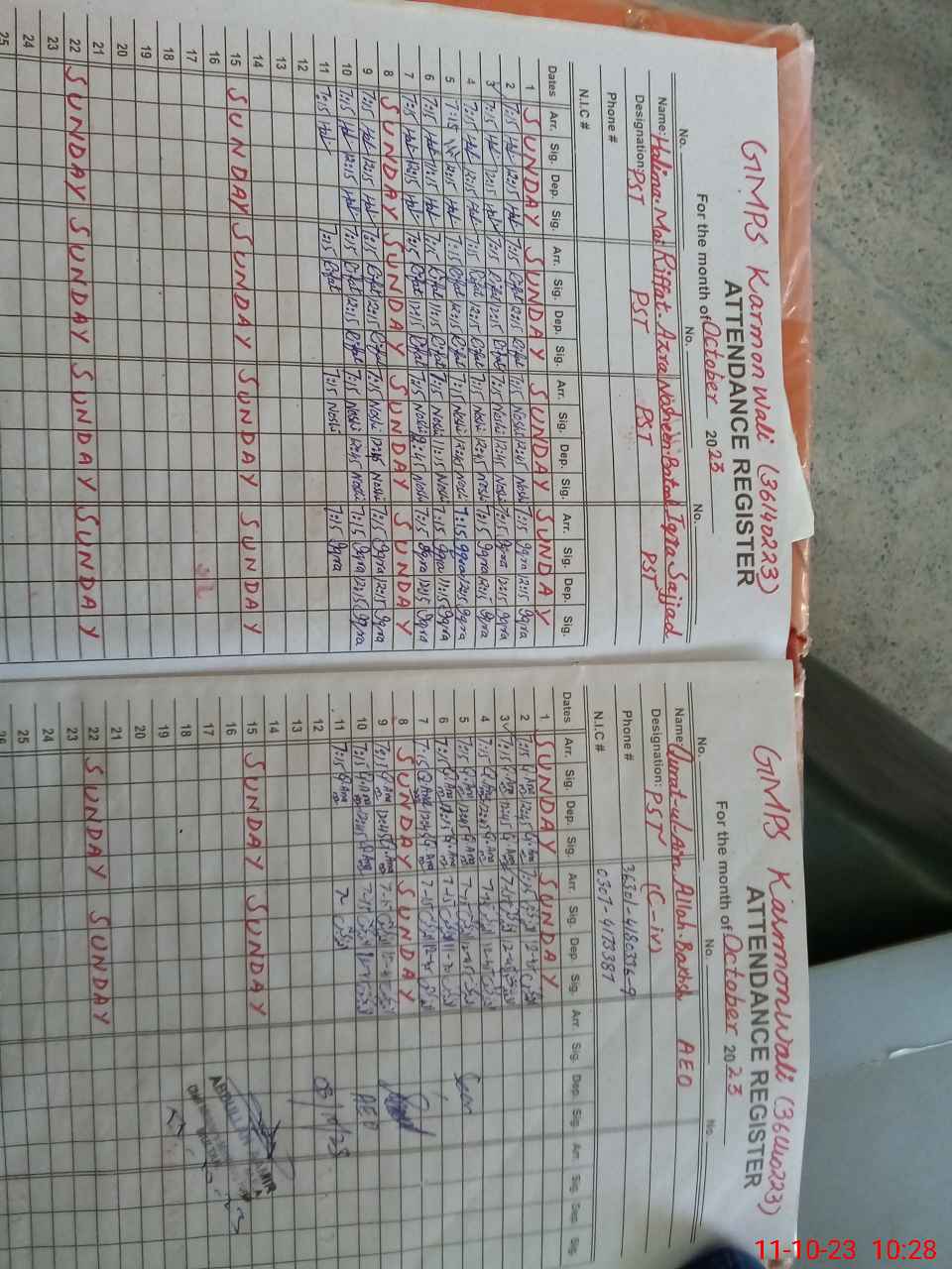 | Name: Ri**** Az**** Designation: (School Headmaster's/Headmistress's) PST Phone/Cell Number: 03**** |