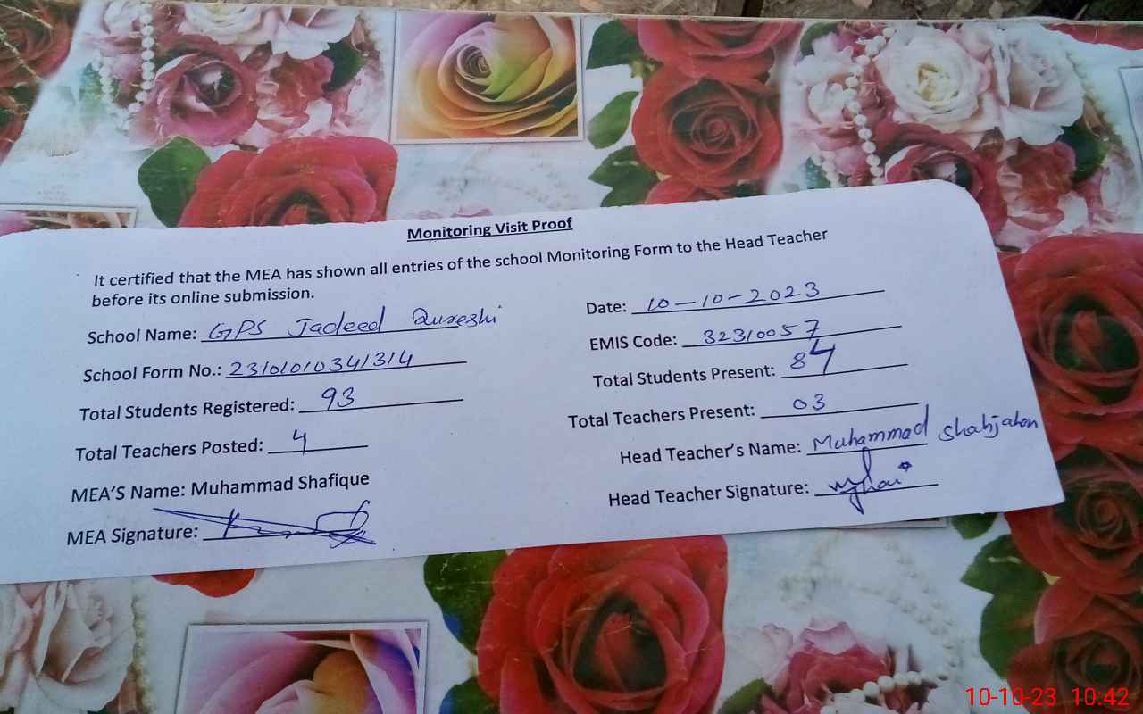 | EMIS Code: 32310057 | Name of School: GPS JADEED QURESHI | |||