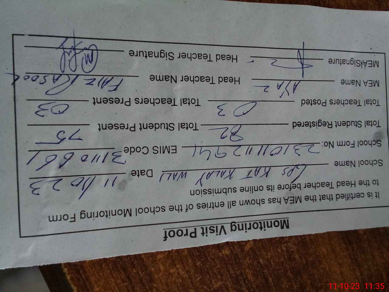 | EMIS Code: 31110671 | Name of School: GPS KAT KALY WALI | |||