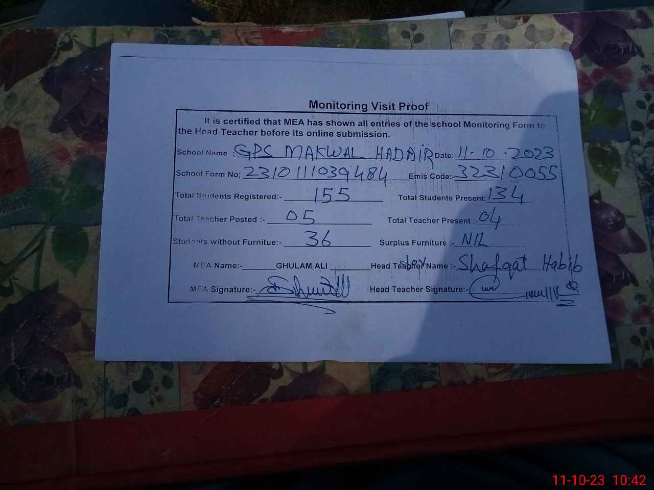 | EMIS Code: 32310055 | Name of School: GPS MAKWAL HADEER | |||
