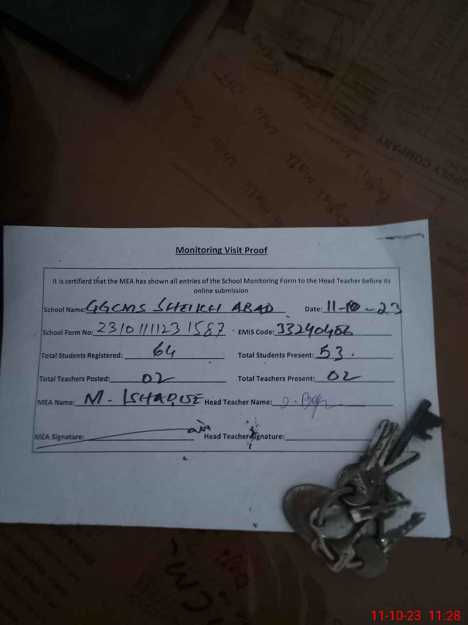 | EMIS Code: 33240406 | Name of School: GGCMS SHEIKH ABAD | |||