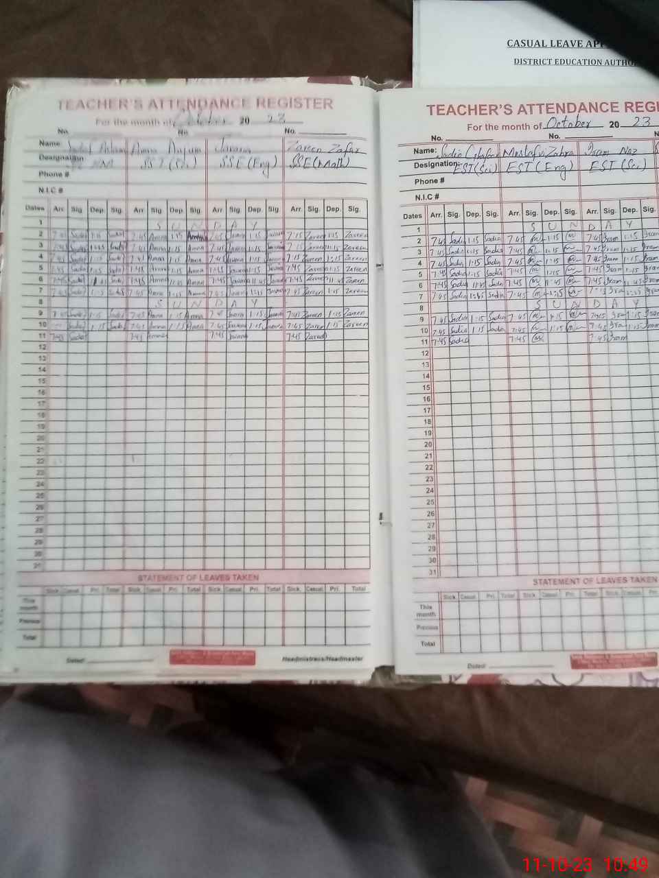 | Remarks (Use Separate Page if Required): PST teacher Nadia Abbas zunaira temporarily adjusted and present in the school | |||||