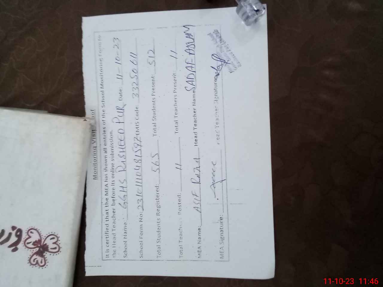 | Certified that this School was Inspected by the Undersigned MEA/DMO Today and the Information Stated Above is as Per Record. | |||||