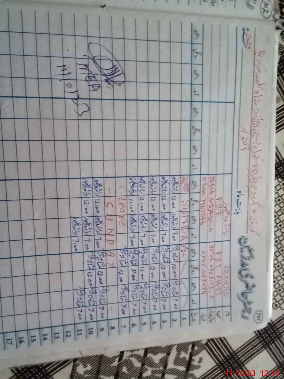 | Name of AEO: | AEO Contact No.: | MEA Phone#: 03**** | ||