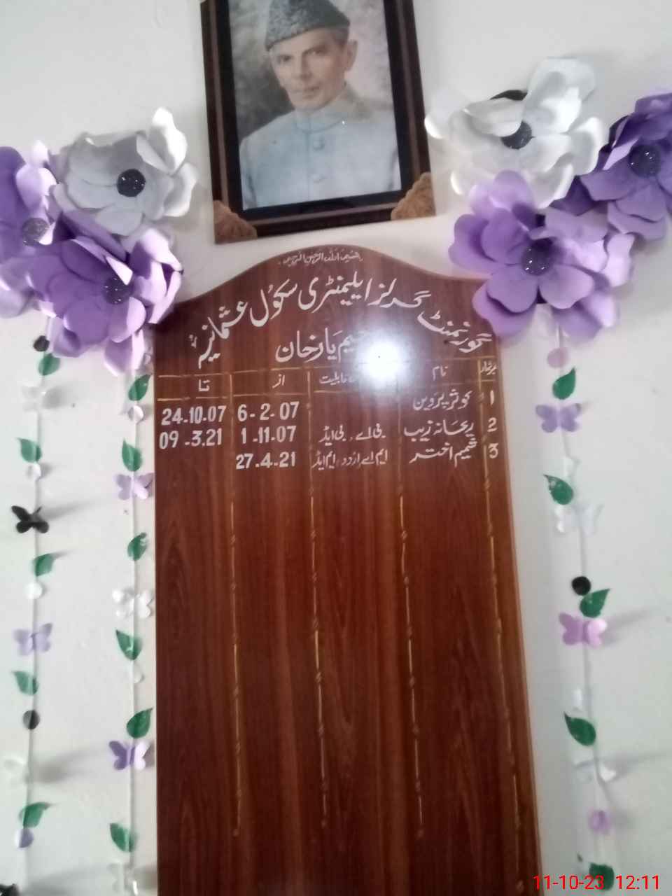 | Name: Zu**** Sa**** Designation: (School Headmaster's/Headmistress's) EST.(general) Phone/Cell Number: 03**** |