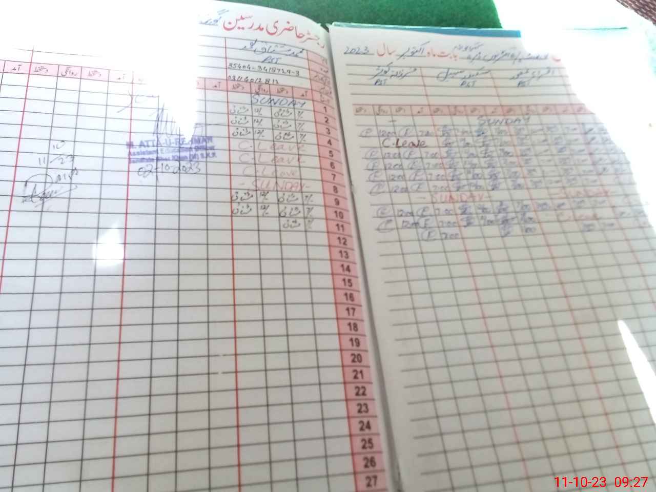 | CNIC | Full Name | Designation | R/C | Absence During Last Calender Month |