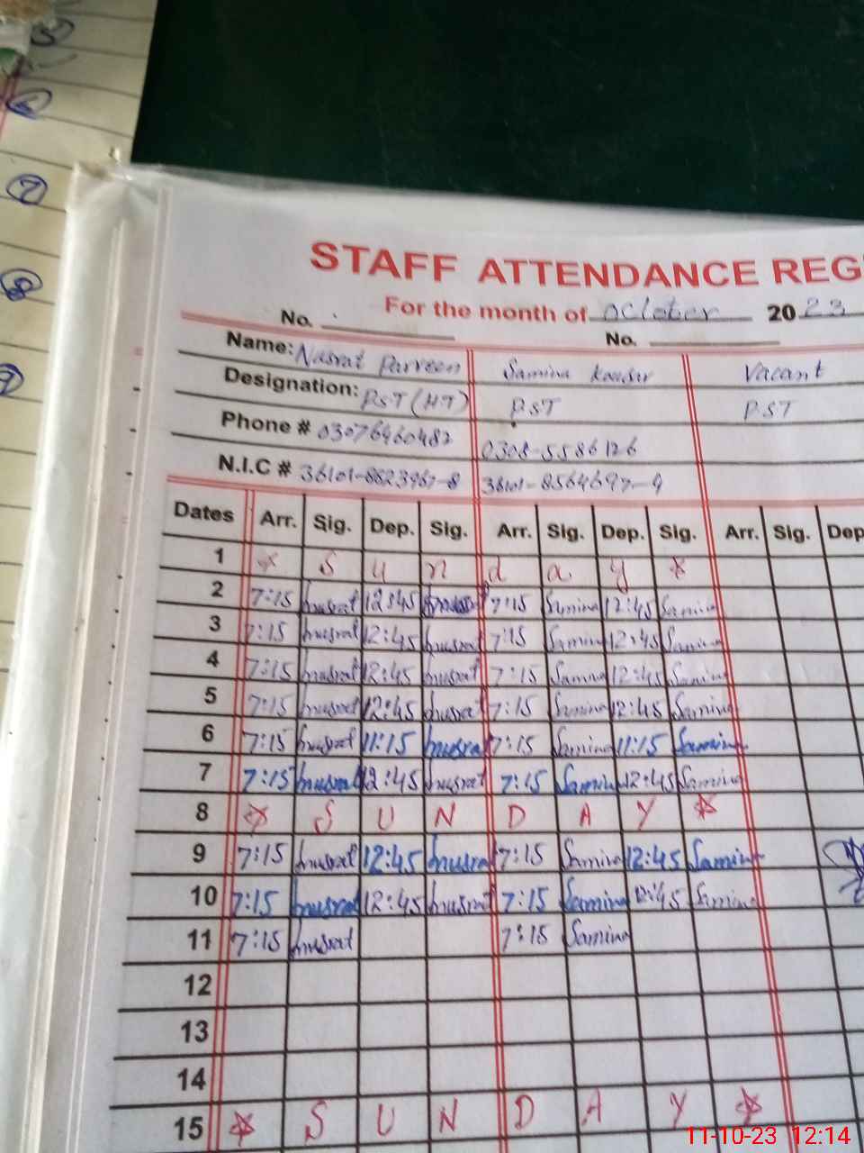 | Name: NU**** PA**** Designation: (School Headmaster's/Headmistress's) PST Phone/Cell Number: 03**** |