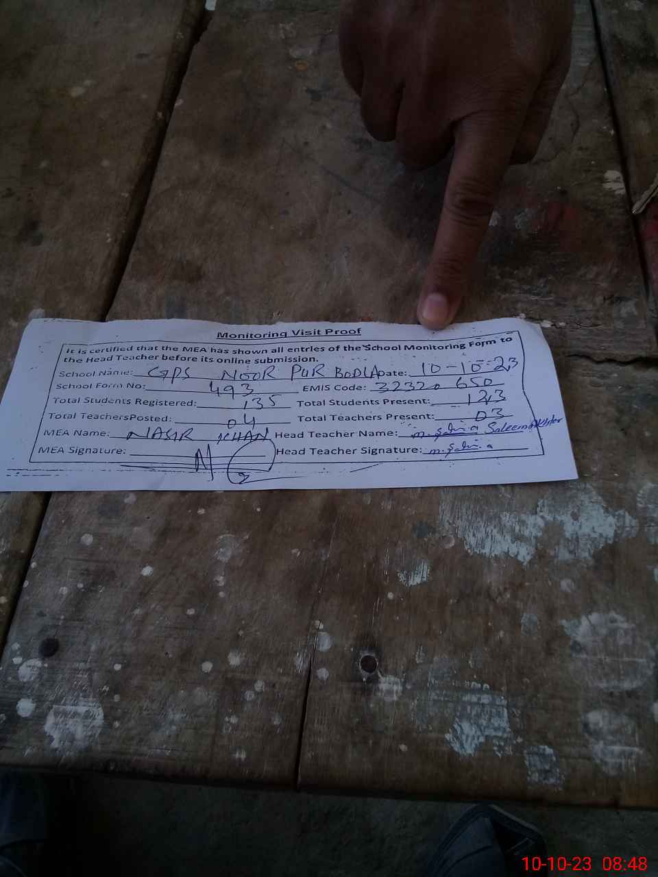 | EMIS Code: 32320650 | Name of School: GPS NOOR PUR BODLA | |||