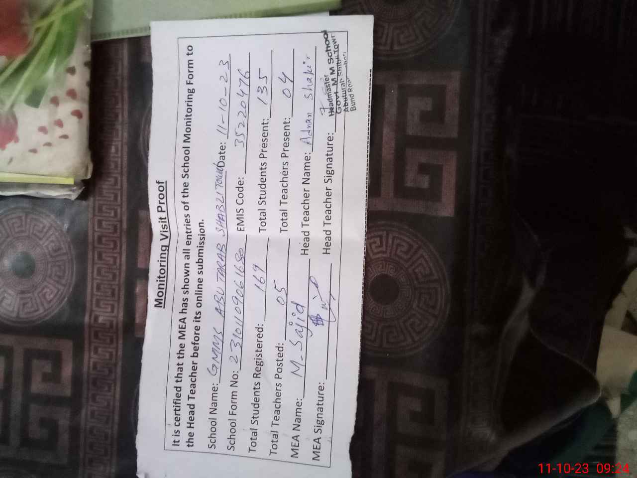 | EMIS Code: 35220476 | Name of School: GMMS ABU TARB SHABLI TOWN BUND ROAD | |||