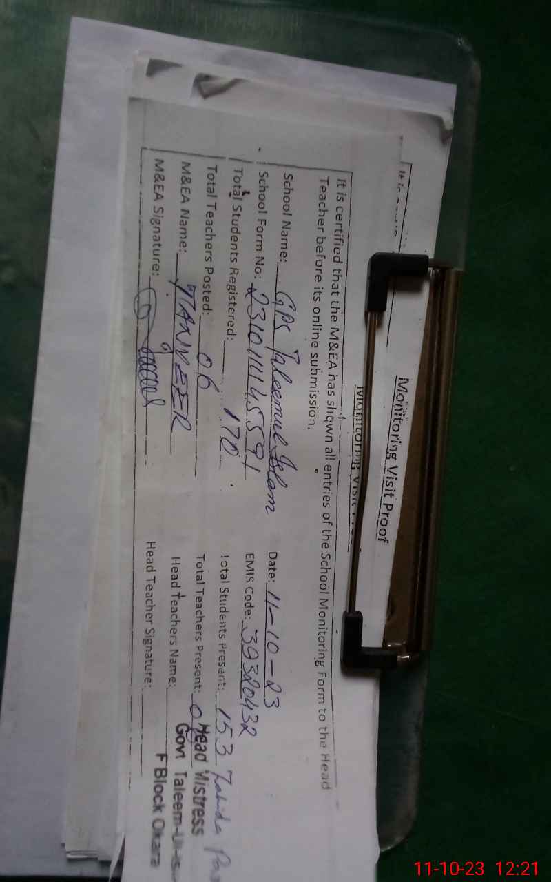 | EMIS Code: 39320432 | Name of School: GPS TALEEM-UL-ISLAM | |||
