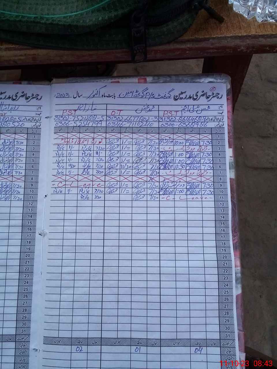 | Name: MU**** BU**** Designation: (School Headmaster's/Headmistress's) OT Phone/Cell Number: 03**** |