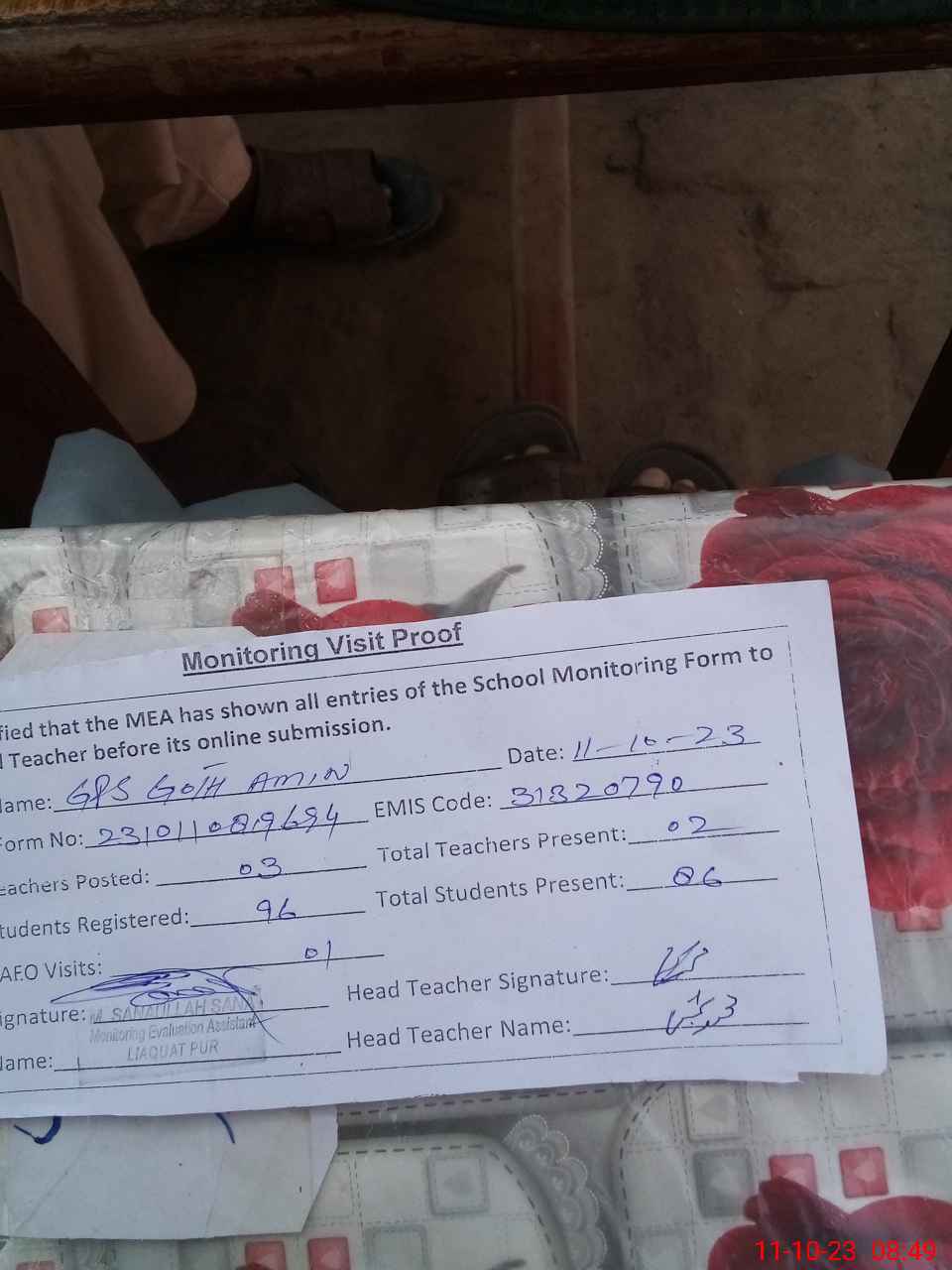 | EMIS Code: 31320790 | Name of School: GPS GOTH AMIN (MOUDIB) | |||