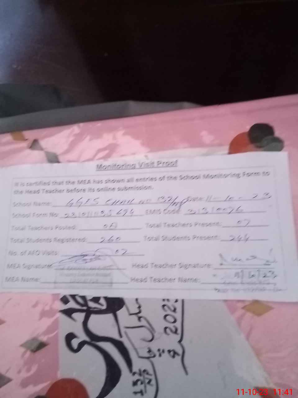| Certified that this School was Inspected by the Undersigned MEA/DMO Today and the Information Stated Above is as Per Record. | |||||