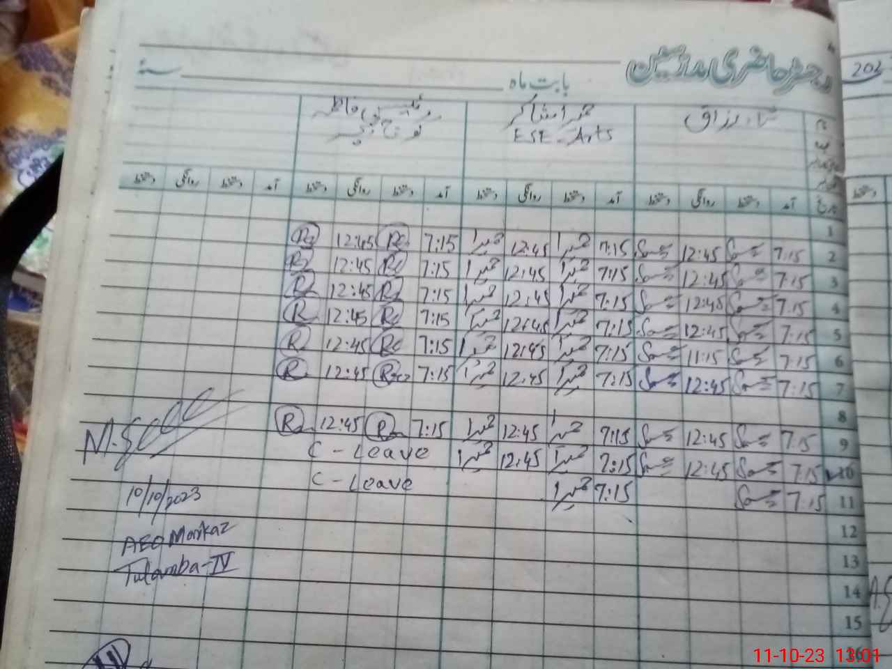 | Monitoring Date: 11-10-2023 | Start Time: 11-10-2023 12:19 PM | End Time: 11-10-2023 01:03 PM | Name of MEA: Kh**** Me**** | |