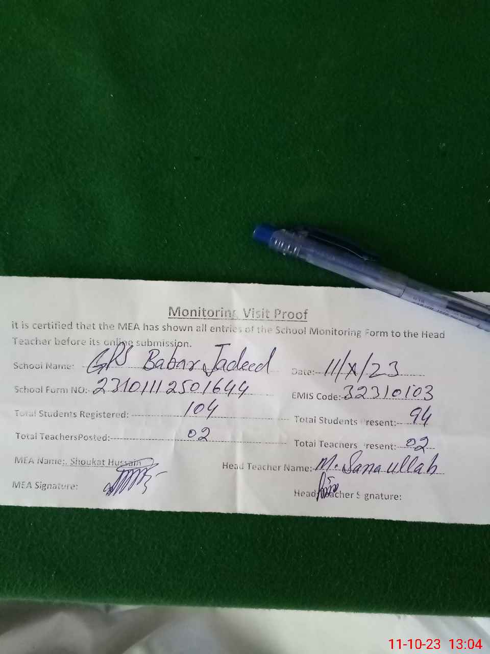 | EMIS Code: 32310103 | Name of School: GPS BABBER JADEED | |||
