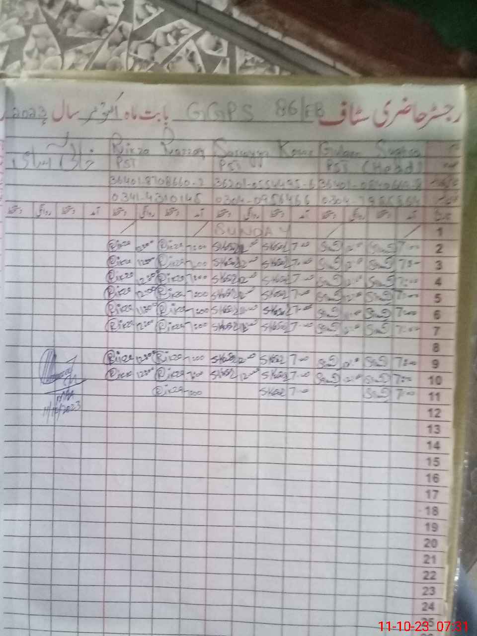 | Name: RI**** RA**** Designation: (School Headmaster's/Headmistress's) PST Phone/Cell Number: 03**** |