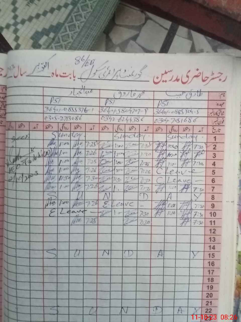 | Name: TA**** HA**** Designation: (School Headmaster's/Headmistress's) PST Phone/Cell Number: 03**** |