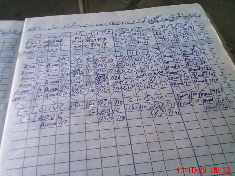 | Name: Sa**** Ah**** Designation: (School Headmaster's/Headmistress's) ESE Phone/Cell Number: 03**** |