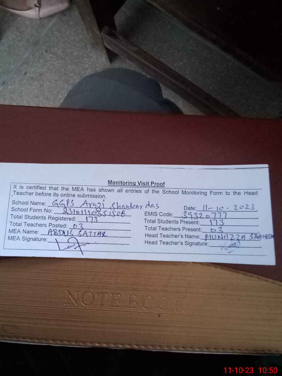 | EMIS Code: 39320777 | Name of School: GGPS ARAZI SHANKAR DAS | |||