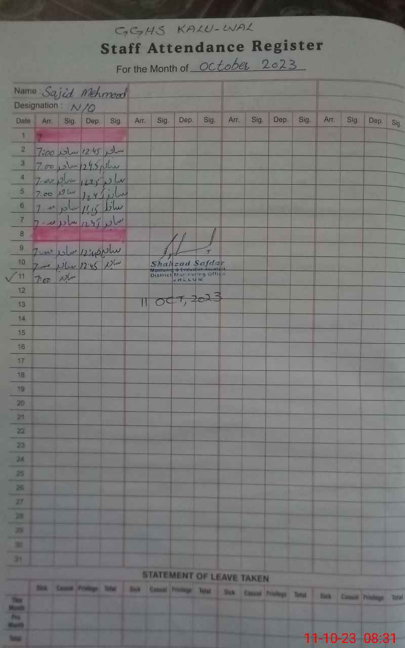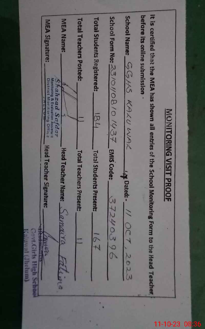 | EMIS Code: 37240396 | Name of School: GGHS KALU WAL | |||