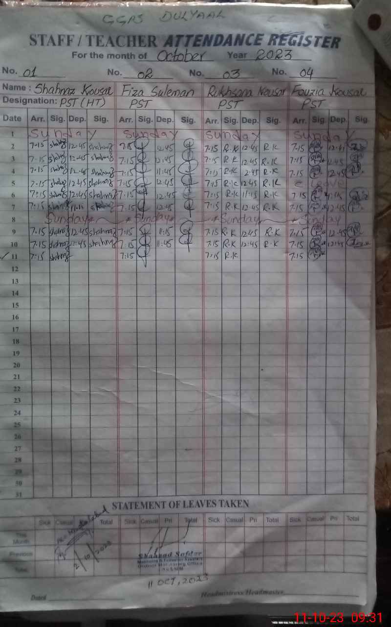 | Attendance Register | Head Teacher | MEA with School | Visit Proof |