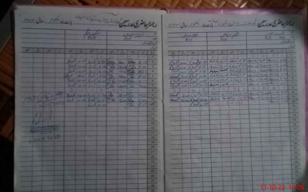| CNIC | Full Name | Designation | R/C | Absence During Last Calender Month |